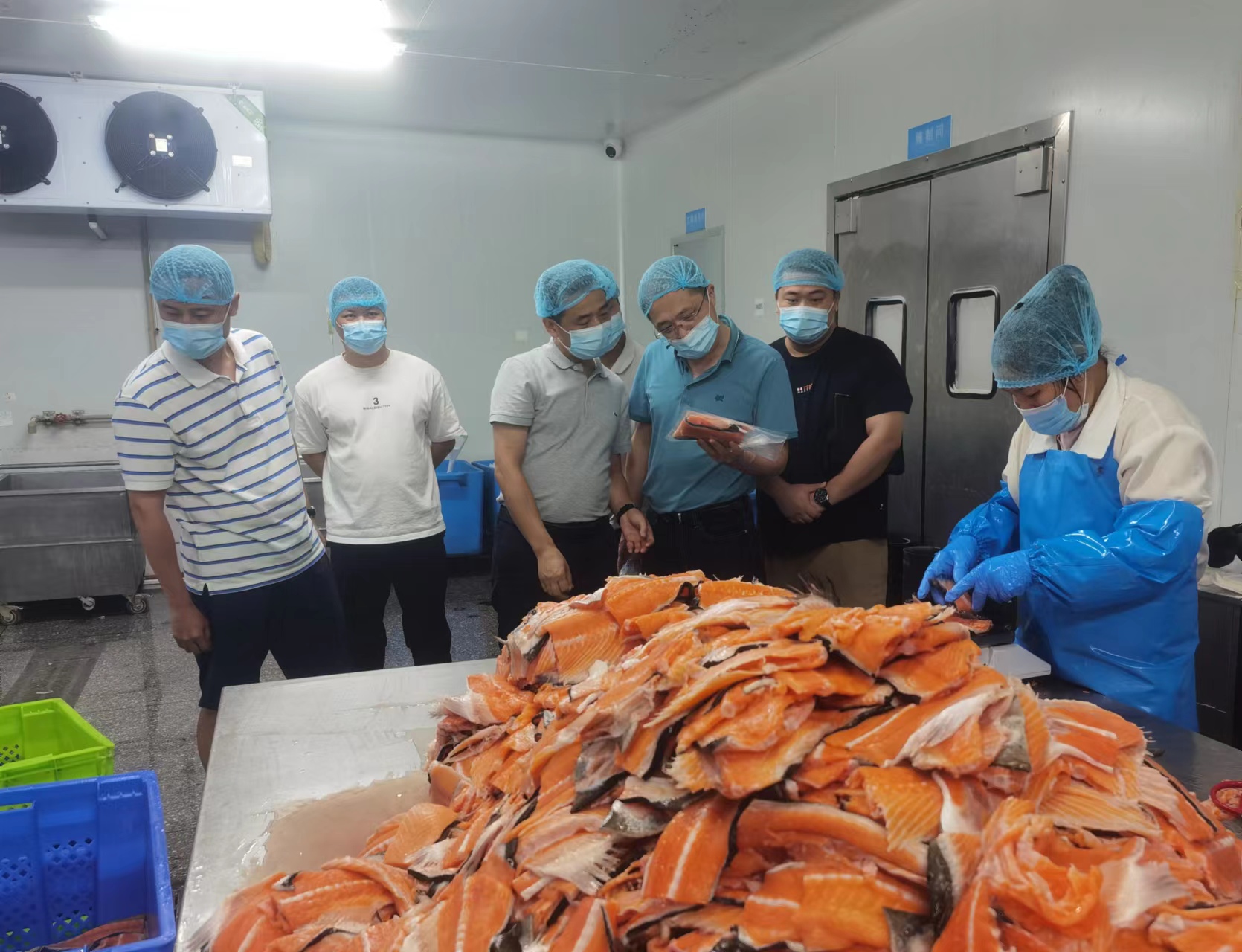 香港是海丝渔业公司冰鲜产品的主要出口地区之一,也是集团未来深耕预制菜产业的重要市场。调研组直达深圳出关一线,坚持问题导向,实地走访深圳冰鲜冷链出口车间、仓库,认真与员工深入沟通交流,直面工作重难点,现场帮助解决实际问题,通过考察调研,客观分析海丝渔业公司冰鲜产品面临出口形势,研判预制菜出口业务前景,为集团谋划发展和加快产业转型升级提供更多工作方法路径。