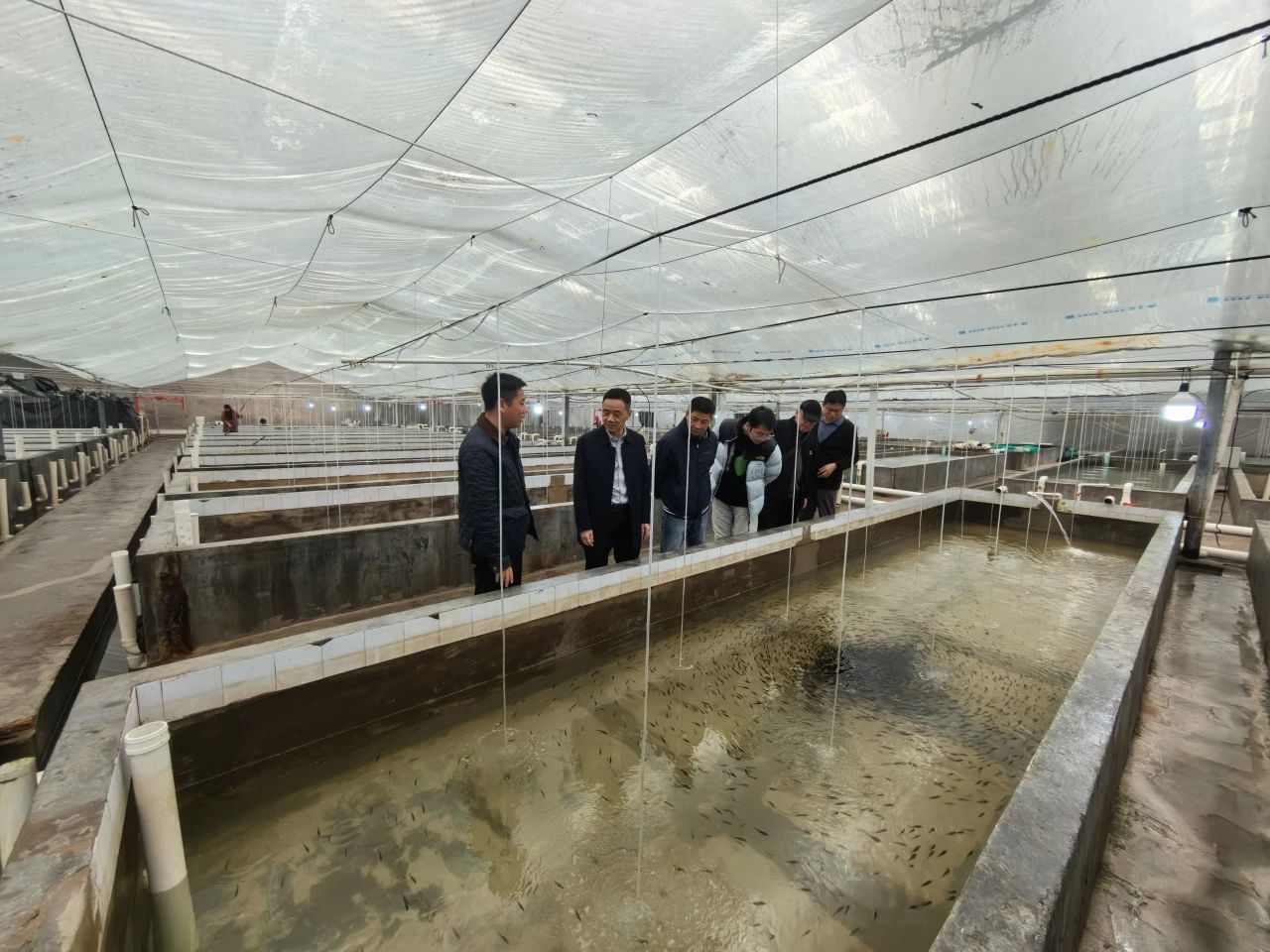 在恒一海科公司,调研组来到绿鳍马面鲀育苗基地,了解基地建设和首批鱼苗培育情况。调研组现场查看了水温控制、水质处理、活饵培养等育苗设施的运行情况,肯定了育苗基地克服冬季气温低等不利因素,提前三个月完成出苗任务的创新成果,指出要再接再厉做好养殖病害防护等后续工作,并针对夏季市场需求,合理分解生产经营计划,充分发挥先发优势,全力实现恒一海科公司“开门红”。