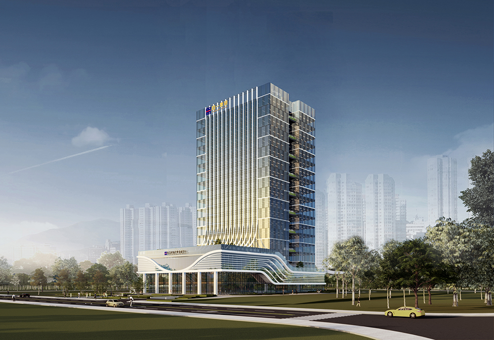 海洋科技产业育成中心是福建国资公司及恒一集团“十四五”规划重点项目,被列为福建省、福州市重点项目及福州市数字经济重大项目,力争打造福建省“智慧海洋”新标杆,助力福州科创走廊建设,推动海洋产业与数字经济融合发展。该项目位于福州市仓山区,总建设用地面积约11590平方米,总投资约5亿元,设计灵感根植于福州本土文化,取意榕树根须以及海浪的动势,其乘势腾飞的建筑造型界面象征“一带一路互惠互利发展之路”。建筑群房与塔楼之间设有内庭院,确保充足的采光与环境通风,与传统庭院式布局相呼应。沿街的商业界面设计内退门廊,形成无风雨外摆空间,增添商业价值。此外,建筑东西两面设计为内凹形,并结合屋面设计立体绿化,共同打造一座现代、环保、美观的办公大厦。