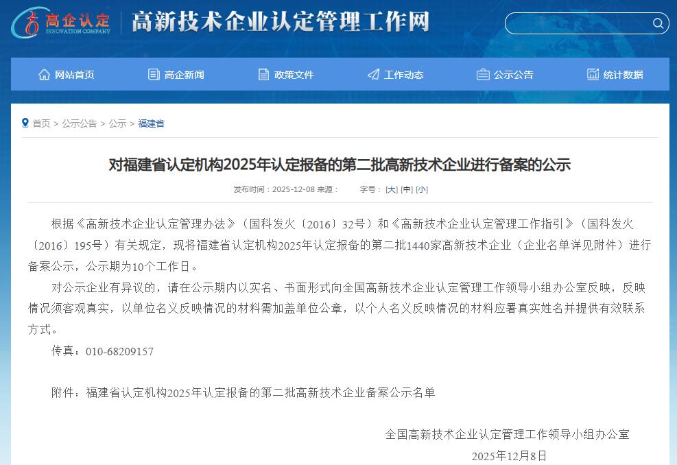 近日,全国高新技术企业认定管理工作领导小组办公室发布《对福建省认定机构2025年认定报备的第二批高新技术企业进行备案的公示》,恒一集团权属企业福州安远精密制模有限公司凭借扎实的研发实力、突出的技术创新能力及完善的成果转化体系,成功通过国家高新技术企业认定。